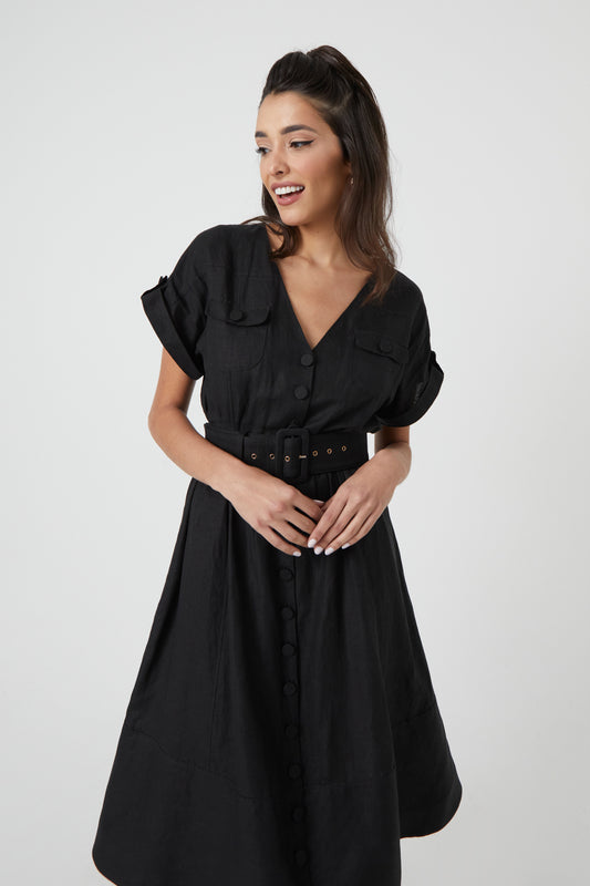 Sold outMargo Black Linen Dress